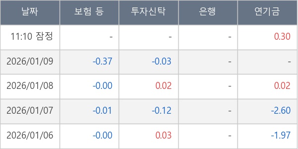 [표] 주요 기관별 순매매량 (단위 만주)