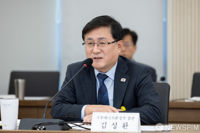 [서울=뉴스핌] 김성환 기후에너지환경부 장관이 12일 세종시 정부세종청사에서 열린 기후에너지환경부 에너지분야 산하기관 업무보고에 참석하여 모두 발언을 하고 있다.[사진= 기후에너지환경부] 2026.01.12 photo@newspim.com