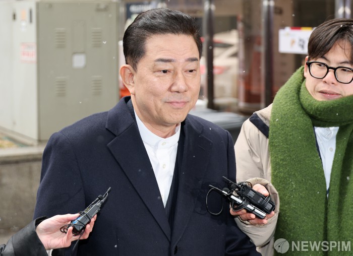[서울=뉴스핌] 정일구 기자 = 김병기 전 더불어민주당 원내대표가 12일 오후 서울 여의도 중앙당사에서 열린 더불어민주당 윤리심판원에 출석하고 있다. 2026.01.12 mironj19@newspim.com