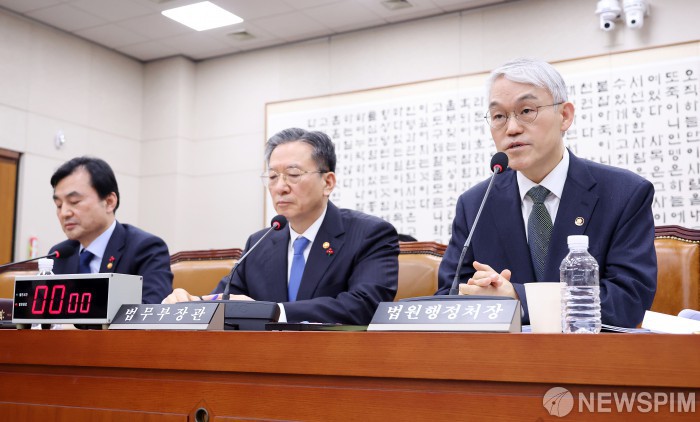 [서울=뉴스핌] 정일구 기자 = 천대엽 법원행정처장이 12일 오후 서울 여의도 국회에서 열린 법제사법위원회 전체회의에서 의원 질의에 답하고 있다. 2026.01.12 mironj19@newspim.com