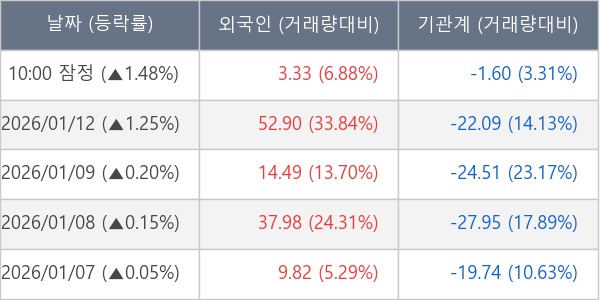 [표] 주요 기관별 순매매량 (단위 만주)