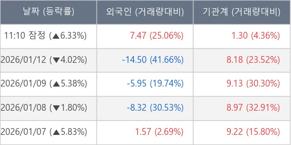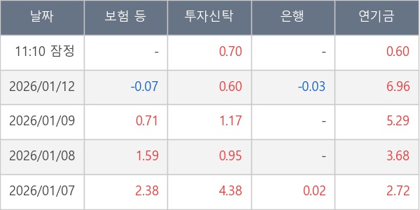 [표] 주요 기관별 순매매량 (단위 만주)