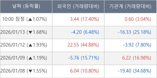 [표] 주요 기관별 순매매량 (단위 만주)