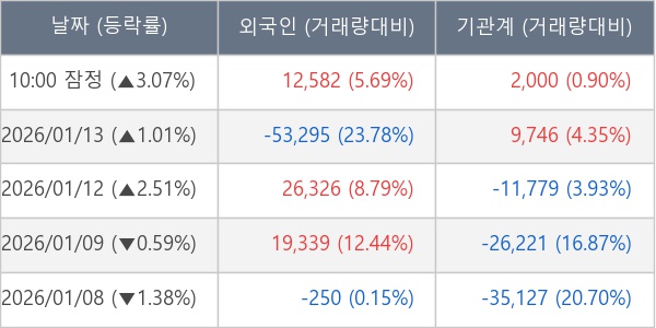 [표] 주요 기관별 순매매량 (단위 주)