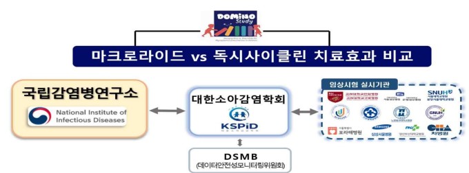 질병청과 국립보건연구원은 이번 임상시험에서 마크로라이드 내성 마이코플라스마 폐렴으로 진단된 만 3세에서 17세인 소아를 대상으로 독시사이클린과 마크로라이드 계열 항생제를 무작위 배정해 해열시간 단축 등 임상적 치료 효과를 평가할 예정이다. 임상시험은 지난 9일 식품의약품안전처 승인을 받았다.