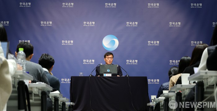 [서울=뉴스핌] 정일구 기자 = 이창용 한국은행 총재가 15일 오전 서울 중구 한국은행에서 열린 통화정책방향 기자간담회에서 발언하고 있다. 한은 금융통화위원회는 이날 새해 첫 회의에서 기준금리를 연 2.50%로 5연속 동결했다. 2026.01.15 mironj19@newspim.com