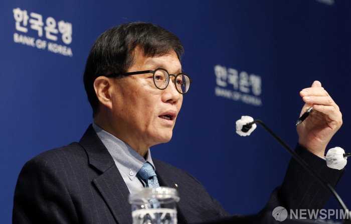 [서울=뉴스핌] 정일구 기자 = 이창용 한국은행 총재가 15일 오전 서울 중구 한국은행에서 열린 통화정책방향 기자간담회에서 취재진 질문에 답하고 있다. 한은 금융통화위원회는 이날 새해 첫 회의에서 기준금리를 연 2.50%로 5연속 동결했다. 2026.01.15 mironj19@newspim.com
