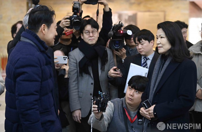 [서울=뉴스핌] 윤창빈 기자 = 이진숙 전 방송통신위원장이 16일 서울 여의도 국회에서 '쌍특검'을 촉구하며 단식 농성중인 장동혁 국민의힘 대표를 찾아 대화를 나누고 있다. 2026.01.16 pangbin@newspim.com