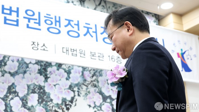 [서울=뉴스핌] 정일구 기자 = 박영재 신임 법원행정처장이 16일 오전 서울 서초구 대법원에서 열린 취임식에서 순국선열에 대한 묵념을 하고 있다. 2026.01.16 mironj19@newspim.com