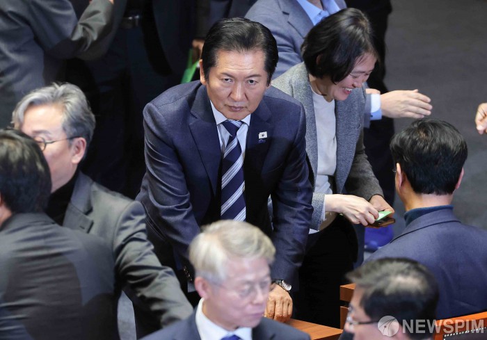 [서울=뉴스핌] 윤창빈 기자 = 정청래 더불어민주당 대표가 16일 서울 여의도 국회에서 열린 본회의에서 무제한 토론 종결 동의의 건에 대한 투표를 하고 있다. 2026.01.16 pangbin@newspim.com