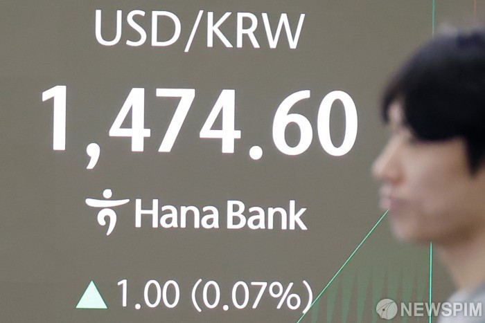 [서울=뉴스핌] 류기찬 기자 = 19일 오전 서울 중구 하나은행 딜링룸 전광판에 달러/원이 표시되고 있다. 이날 코스피 지수는 전 거래일 대비 11.34포인트(0.23%) 하락한 4829.40, 달러/원 환율은 0.4원 오른 1474.00원에, 코스닥 지수는 1.66포인트(0.17%) 내린 952.93에 장을 시작했다. 2026.01.19 ryuchan0925@newspim.com