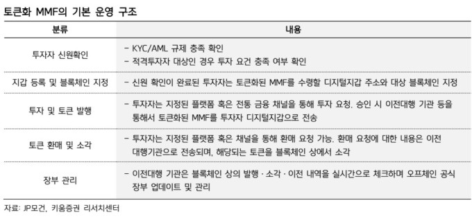 키움증권은 "MMF 토큰화 사례가 점차 확산되며 전통 금융기관의 블록체인 도입과 온체인화 과정에서 다양한 사례가 등장할 것"이라고 전망했다. 규제 환경이 개선되고 기술이 성숙하면서 채권, 주식 등 다른 자산군으로도 토큰화가 확대될 가능성이 크다는 것이다.