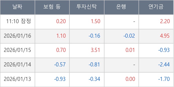 ※ 사모펀드 등 일부 기관의 순매매량은 표시되지 않음