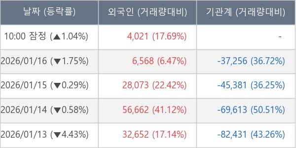 [표] 외국인ㆍ기관 순매매량 (단위 주)