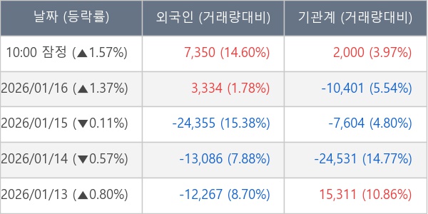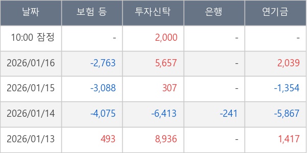 [표] 주요 기관별 순매매량 (단위 주)