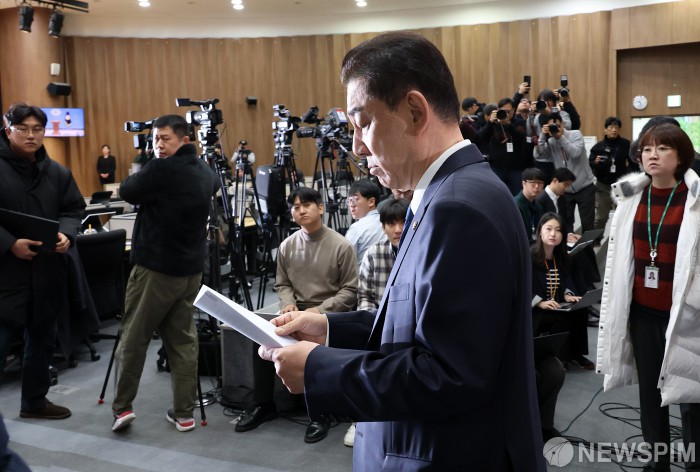 [서울=뉴스핌] 정일구 기자 = 김병기 더불어민주당 의원이 19일 오전 서울 여의도 국회 소통관에서 당 윤리심판원의 제명 처분 결정 등에 대한 입장 발표 기자회견을 하기 위해 입장하고 있다. 2026.01.19 mironj19@newspim.com