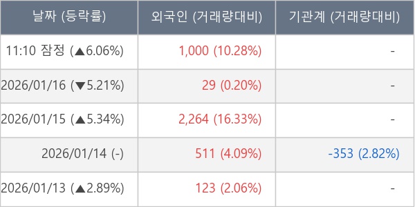 [표] 외국인ㆍ기관 순매매량 (단위 주)