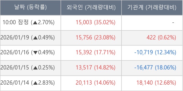 [표] 외국인ㆍ기관 순매매량 (단위 주)