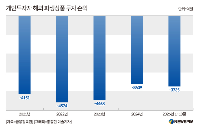 당국은 이 같은 수요를 국내 시장으로 흡수하겠다는 입장이지만, 고배율 레버리지 상품의 구조적 위험성은 여전히 부담 요인으로 지적된다. 금융감독원에 따르면 개인투자자의 해외 파생상품(선물·옵션) 투자 손실은 ▲2021년 -4151억원 ▲2022년 -4574억원 ▲2023년 -4458억원 ▲2024년 -3609억원 ▲2025년 1~10월 -3735억원 등 누적으로 2조527억원에 달한다.