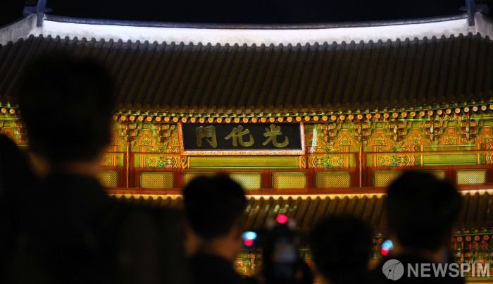 2023년 서울 광화문에서 열린 광화문 월대 및 현판 복원 기념행사. [사진=뉴스핌DB]