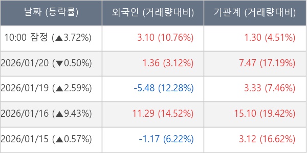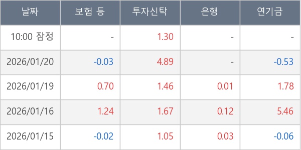 [표] 주요 기관별 순매매량 (단위 만주)
