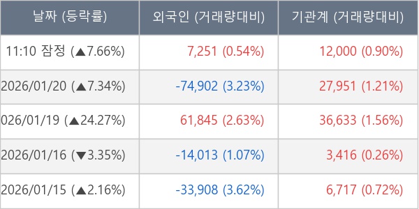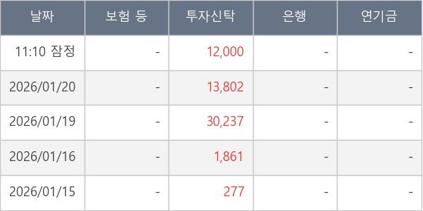 [표] 주요 기관별 순매매량 (단위 주)