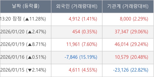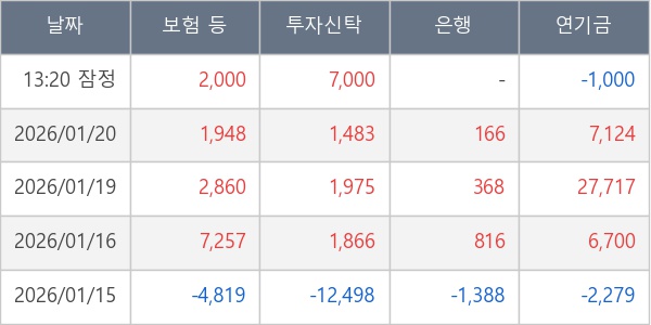 [표] 주요 기관별 순매매량 (단위 주)