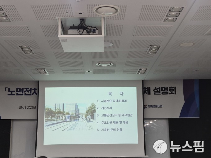 [서울=뉴스핌] 정영희 기자 = 지난 20일 열린 국토교통부 대도시권광역교통위원회 '노면전차 사업 가이드라인 설명회'에서 서울시 관계자가 위례선 트램 사업 추진 현황을 설명하고 있다. 2026.01.21 chulsoofriend@newspim.com
