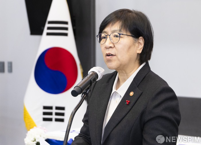 [서울=뉴스핌] 정은경 보건복지부 장관이 21일 오전 서울 마포구 한국사회복지협의회에서 열린 2026년 사회복지계 신년인사회에서 인사말을 하고 있다. [사진=보건복지부] 2026.01.21 photo@newspim.com