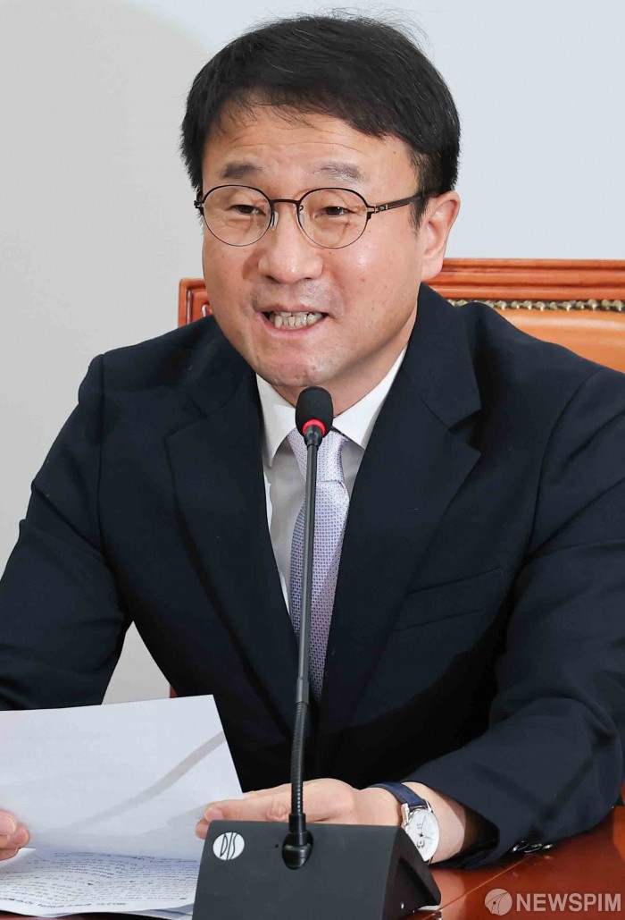 [서울=뉴스핌] 윤창빈 기자 = 한병도 더불어민주당 원내대표가 22일 서울 여의도 국회에서 열린 정책조정회의에서 모두발언을 하고 있다. 2026.01.22 pangbin@newspim.com