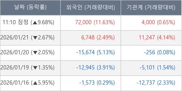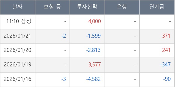 [표] 주요 기관별 순매매량 (단위 주)