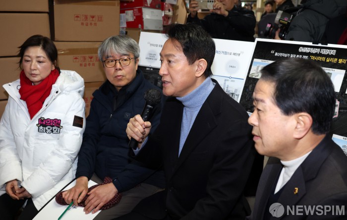 [서울=뉴스핌] 정일구 기자 = 용산전자상가 현장 점검에 나선 오세훈 서울시장이 22일 오전 서울 용산구 선인상가에서 열린 상가 소유자·상인·지역주민 현장 간담회에서 발언을 하고 있다. 2026.01.22 mironj19@newspim.com