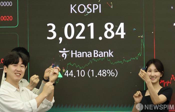 지난해 6월 코스피 3,000 시대를 축하하며 [사진=하나은행]지난해 10월 2일 3500을 넘어 거래중인 코스피. 코스피 지수는 3549.21에 거래를 마감했다. [사진=뉴스핌DB]