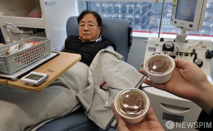 [서울=뉴스핌] 양윤모 기자 = 23일 헌혈을 위해 서울동부혈액원 헌혈의집 광화문센터를 찾은 시민이 혈액 수급 위기 극복을 위해 두바이 쫀득 쿠키(두쫀쿠)를 ‘당일 제작’ 기념품으로 선착순 증정하는 이벤트행사에 참여하고 있다. 이번 행사는 23일부터 2월 26일까지 총 5회(매주 1회) 진행된다. 2026.01.23 yym58@newspim.com