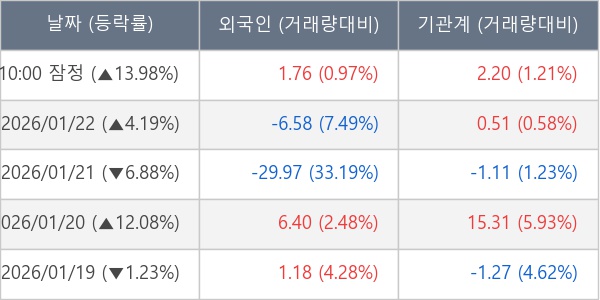 [표] 주요 기관별 순매매량 (단위 만주)