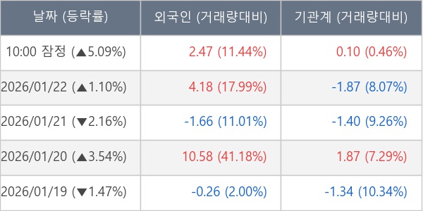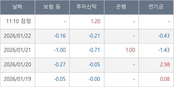 [표] 주요 기관별 순매매량 (단위 만주)