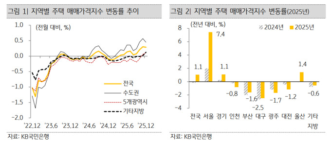 5개 광역시와 기타 지방은 각각 2025년 연간 기준 1.44%, 0.57% 하락하며 수도권과 대비되는 흐름을 보였다.