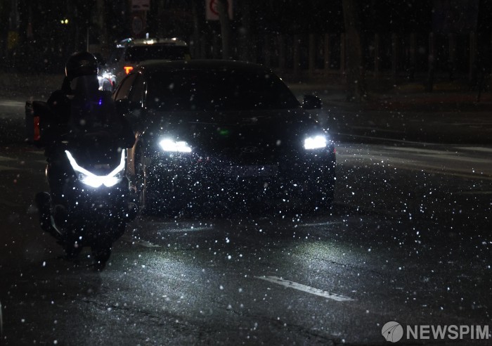 [서울=뉴스핌] 이형석 기자 = 23일 밤 서울 여의도에 눈이 내리고 있다. 2026.01.23 leehs@newspim.com