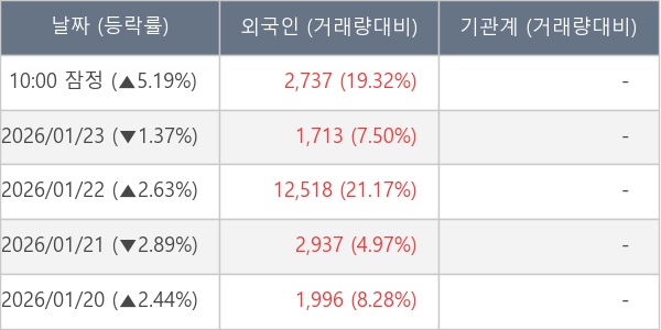 [장중수급포착] 아이빔테크놀로지, 외국인 5일 연속 순매수행진... 주가 +5.19%