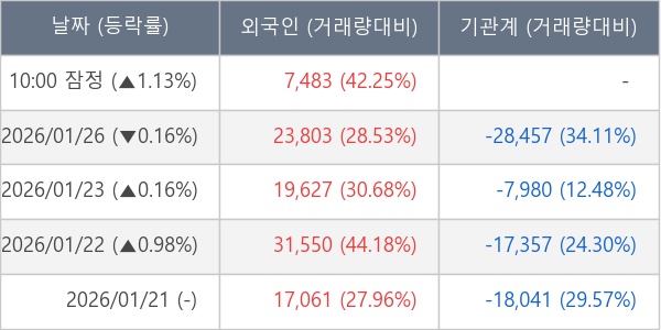 [표] 외국인ㆍ기관 순매매량 (단위 주)