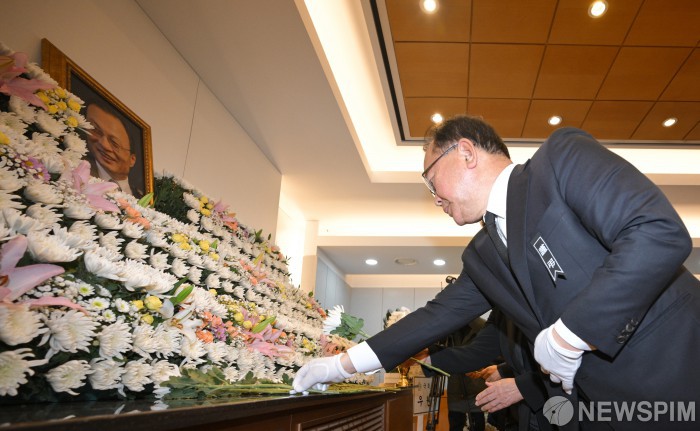 [서울=뉴스핌] 정일구 기자 = 김부겸 전 국무총리가 27일 오전 서울 종로구 서울대병원 장례식장에 마련된 고(故) 이해찬 민주평화통일자문회의 수석부의장의 빈소에서 조문하고 있다. 2026.01.27 mironj19@newspim.com