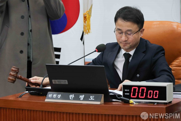 [서울=뉴스핌] 윤창빈 기자 = 한병도 국회 운영위원장이 27일 서울 여의도 국회에서 열린 운영위원회 전체회의에서 의사봉을 두드리고 있다. 2026.01.27 pangbin@newspim.com