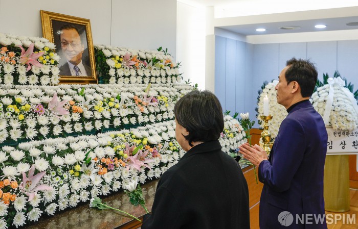 [서울=뉴스핌] 사진공동취재단 = 27일 서울 종로구 서울대학교병원 장례식장에 이해찬 민주평화통일자문회의 수석부의장의 빈소가 마련된 가운데 우상호 전 청와대 정무수석이 조문을 하고 있다. 2026.01.27 photo@newspim.com