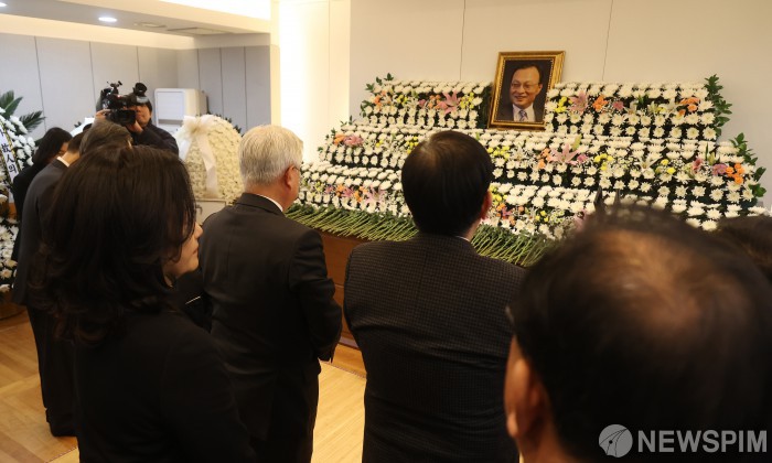 [서울=뉴스핌] 사진공동취재단 = 문재인 전 대통령과 김정숙 여사가 27일 오후 서울 종로구 서울대학교병원 장례식장에 마련된 고 이해찬 민주평화통일자문회의 수석부의장의 빈소를 찾아 조문하고 있다. 2026.01.27 photo@newspim.com
