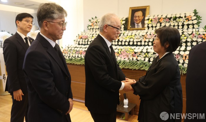[서울=뉴스핌] 사진공동취재단 = 이부영 동아자유언론수호투쟁위원회 위원장과 이재오 민주화운동기념사업회 이사장이 27일 오후 서울 종로구 서울대학교병원 장례식장에 마련된 고 이해찬 민주평화통일자문회의 수석부의장의 빈소를 찾아 유가족을 위로하고 있다. 2026.01.27 photo@newspim.com