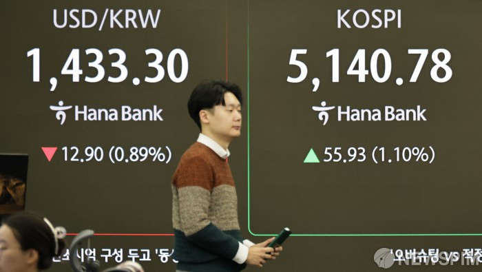 [서울=뉴스핌] 양윤모 기자 = 28일 오전 코스피가 전장 종가보다 55.93 포인트(1.10%) 상승하며 5140.78로, 코스닥은 12.05 포인트(1.11%) 상승한 1094.64로 장을 시작한 가운데, 서울 중구 하나은행본점 딜링룸에서 직원들이 업무를 보고 있다. 서울외환시장에서 달러/원 환율은 전장 대비 12.90원 하락한 1433.30원에 주간거래를 시작했다. 2026.01.28 yym58@newspim.com
