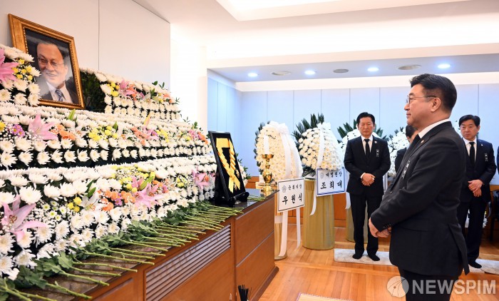 [서울=뉴스핌] 사진공동취재단 = 윤호중 행정안전부 장관이 28일 오전 서울 종로구 서울대학교병원 장례식장에 마련된 고(故) 이해찬 전 국무총리의 빈소에서 조문을 하고 있다. 2026.01.28 photo@newspim.com