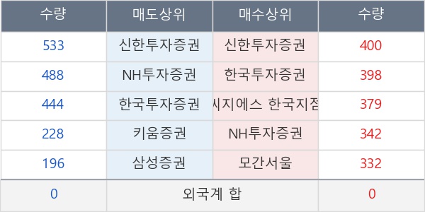 [표] 외국인ㆍ기관 순매매량 (단위 주)