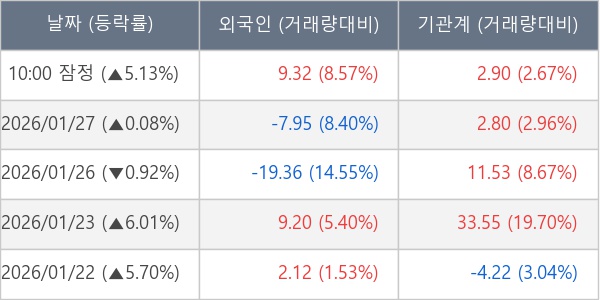 [표] 주요 기관별 순매매량 (단위 만주)