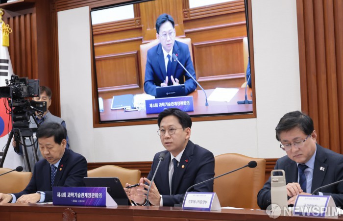 [서울=뉴스핌] 이길동 기자 = 배경훈 부총리 겸 과학기술정보통신부 장관이 28일 서울 종로구 정부서울청사에서 열린 제4회 과학기술관계장관회의를 주재하며 모두 발언을 하고 있다. 2026.01.28. gdlee@newspim.com